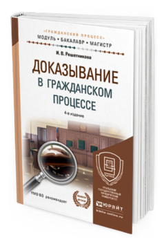 Решетникова, И. В. Доказывание в гражданском процессе : учебно-практическое пособие для бакалавриата и магистратуры / И. В. Решетникова. — 4-е изд., перераб. и доп. — Москва : Издательство Юрайт, 2015. — 510 с. — (Высшее образование). — ISBN 978-5-9916-5138-7. — Текст : электронный // Образовательная платформа Юрайт [сайт]. — URL: https://urait.ru/bcode/384580 (дата обращения: 19.01.2026).