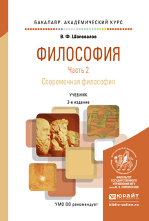 Шаповалов, В. Ф. Философия в 2 ч. Часть 2. Современная философия : учебник для академического бакалавриата / В. Ф. Шаповалов. — 3-е изд., испр. и доп. — Москва : Издательство Юрайт, 2020. — 217 с. — (Бакалавр. Академический курс). — ISBN 978-5-534-01851-6. — Текст : электронный // Образовательная платформа Юрайт [сайт]. — URL: https://urait.ru/bcode/448104 (дата обращения: 20.02.2026).